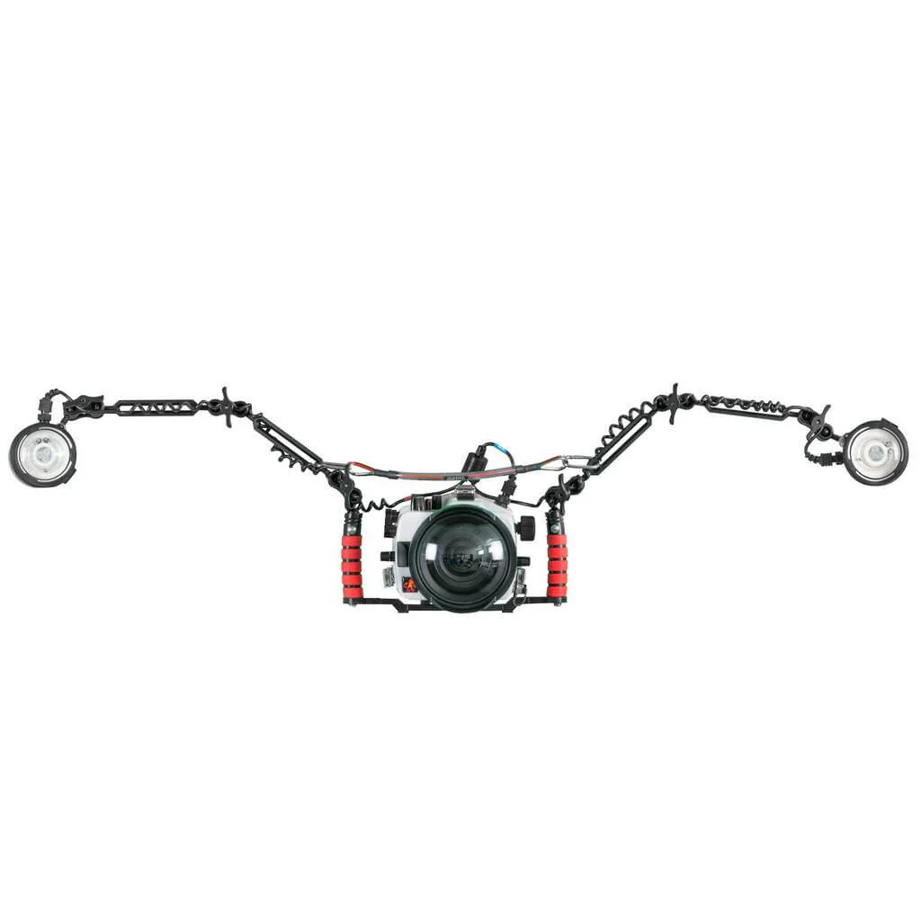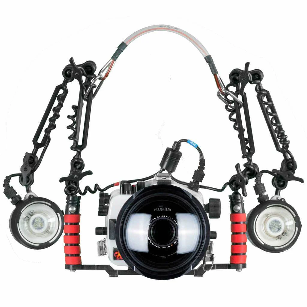 Span your dual tray and arm system with this cable top handle. A stainless-steel cable with comfortable rubber overlay is the perfect lightweight addition to carry your system to and from the dive site or pool. Works with dual trays for Compact Digital or DSLR housings with two lighting arms attached. The cable grip can attach either around a ball mount stem or in the centre slots of newer ball arm sections. Unique Sliding Grip If you're using our slotted arm system the carabiners can be attached in the slots of the two arms closest to the handles, allowing the cable move up and down freely. During transport, slide the cable up the slots so the arms can fold over. Having the strobes and housing hang lower provides a very natural weight distribution similar to a duffle bag. This is ideal when moving the system around, especially when handing it in and out of the water. After you've comfortably gotten in the water, simply slide the cable down and "spread the wings" of your system. When the dive is over, fold the system up during your safety stop and getting back on the boat will be a breeze. The person you hand your system up to will appreciate having an accessible handle, especially if the water is rough.$87.87