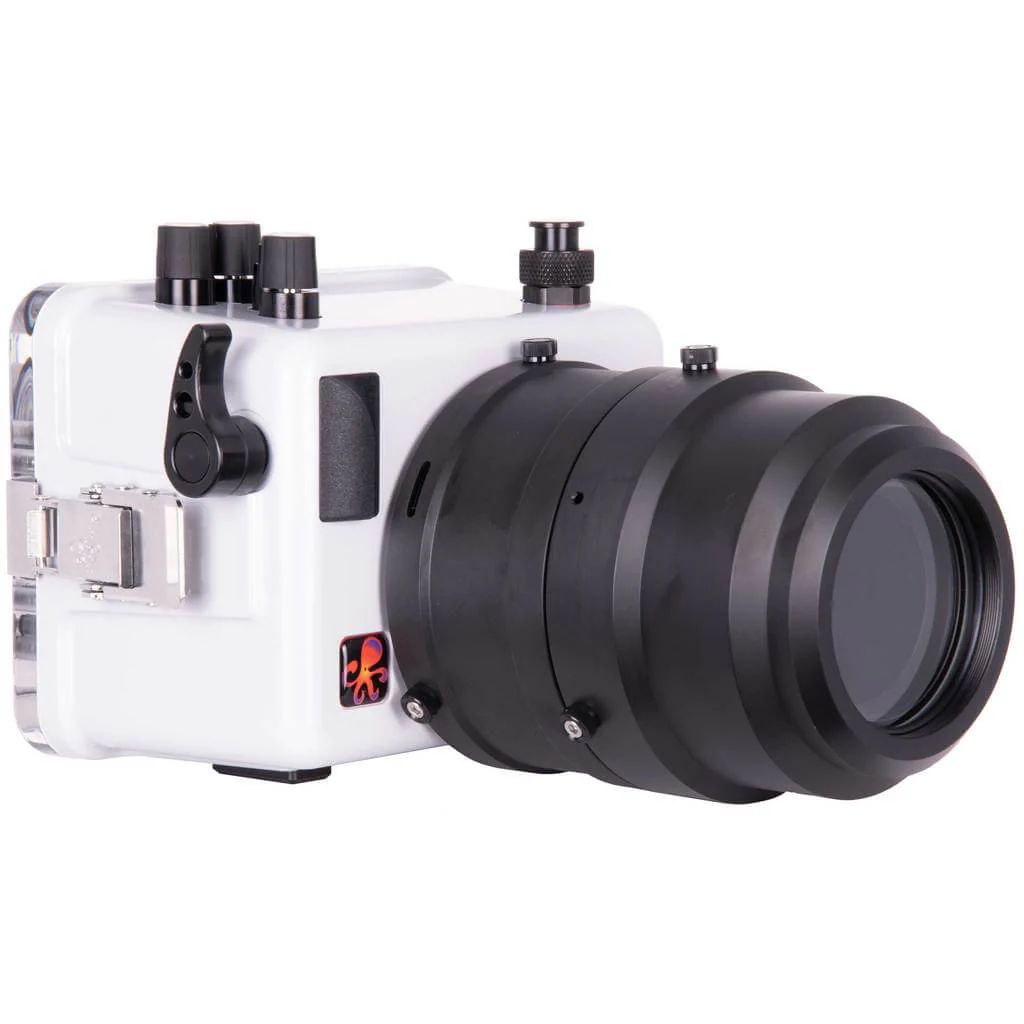 Combine with the Mirrorless Flat Port Extended to use the Canon 100mm IS USM Macro lens with the Ikelite Housing for the Canon EOS 100D Rebel SL1 DSLR. Auto focus only.