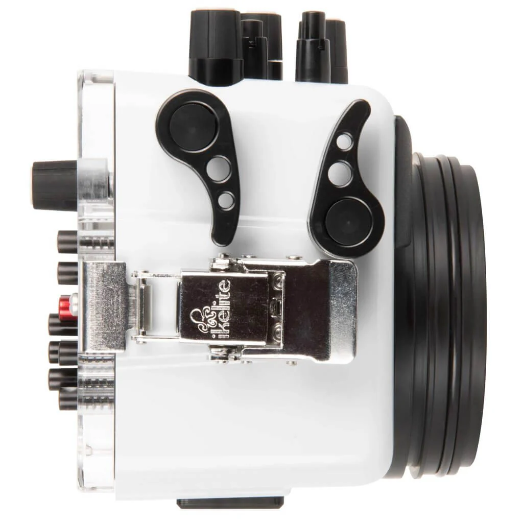 This housing accepts ports from Ikelite's DLM Port System to accommodate a selection of the best zoom, macro, and wide angle lenses for underwater use. The custom optical grade acrylic domes components provide the colour, clarity, and durability of glass at a fraction of the travel weight and cost.