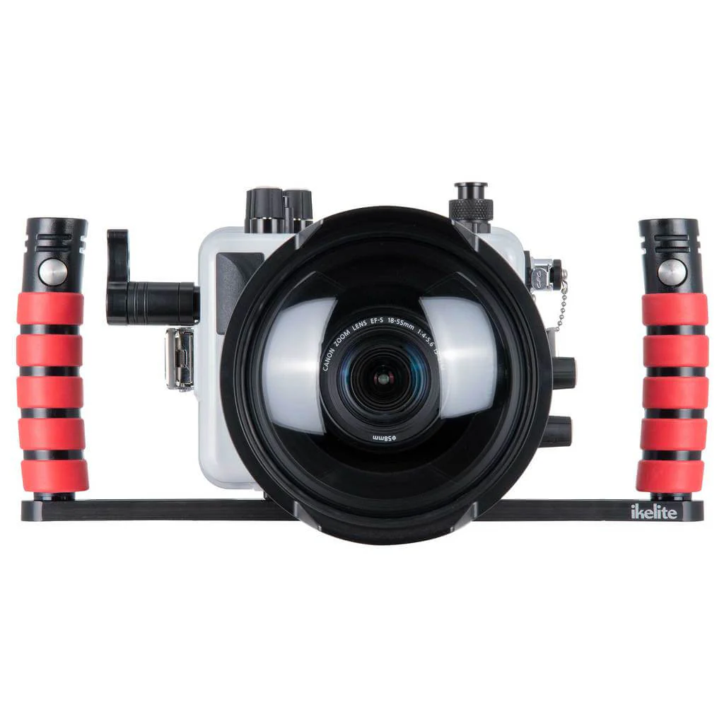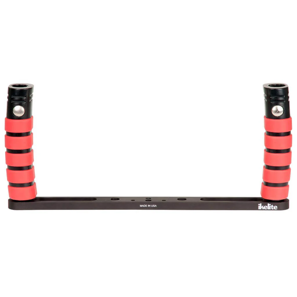 The tray with dual release handles comes with the necessary hardware to mount to Ikelite housings featuring female mounting points with 76mm (3") spacing.